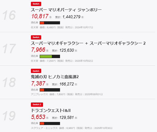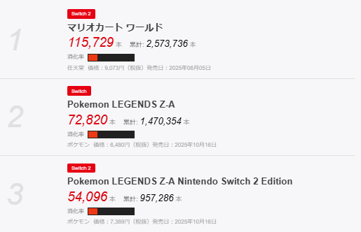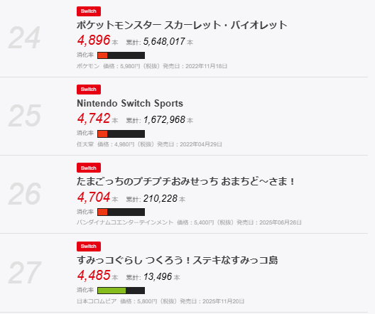 出典:ゲームソフト販売本数ランキング 集計期間:2025年12月15日~2025年12月21日