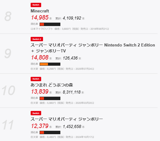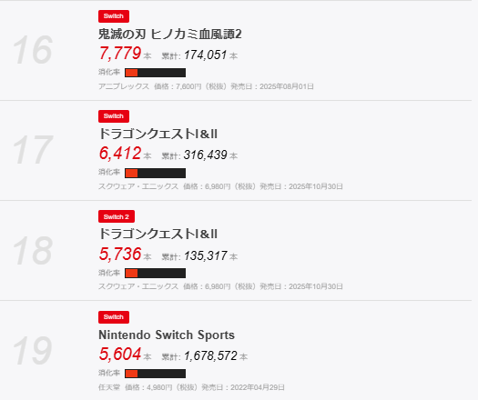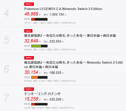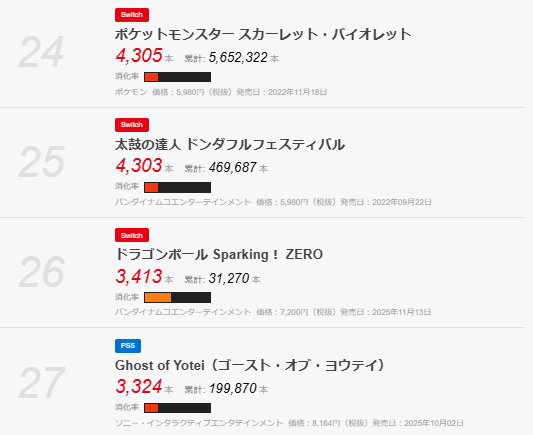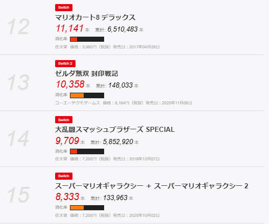 出典:ゲームソフト販売本数ランキング 集計期間:2025年12月22日~2025年12月28日