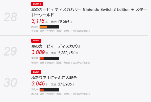 本日ファミ通で更新された、先週のソフトランキングTOP30は以下となる。