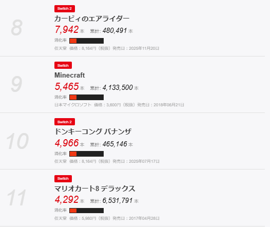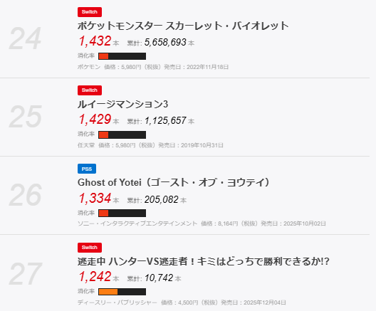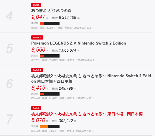 昨日のTOP10の売り上げを見るに、スイッチ2があるとは言え、その傾向は今年も逃れられない状況となっている。