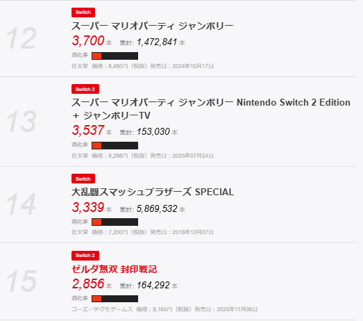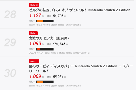 この本数で緑色ということは、スイッチ2エディションでも結構出荷はしているのだなぁと。