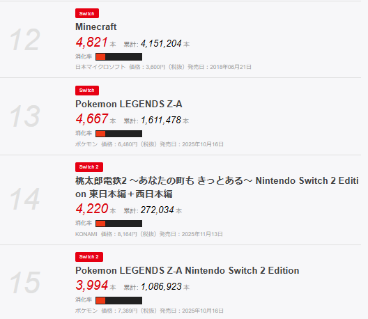こちらは先行のスイッチ・スイッチ2版と比べるとあまりにも低い売上。