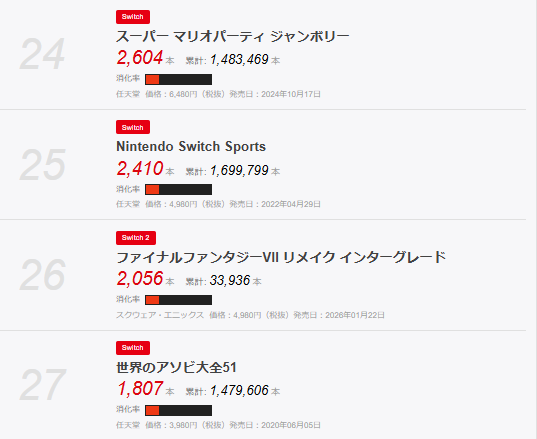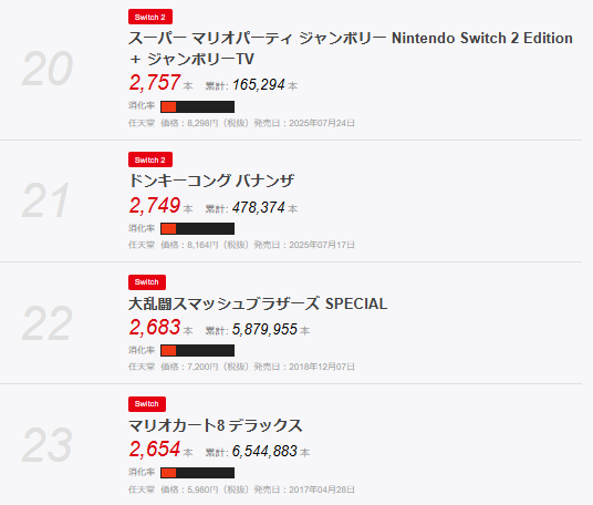これから徐々に売っていくはずなので、この消化率でも安心なのは任天堂タイトルならでは。