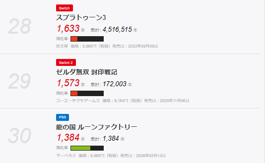 【ファミ通】2026年02月09日~2026年02月15日のソフトランキングTOP30