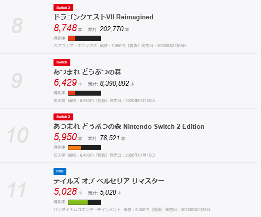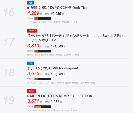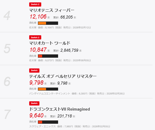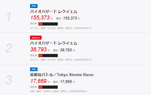 出典:ゲームソフト販売本数ランキング 集計期間:2026年02月23日~2026年03月01日