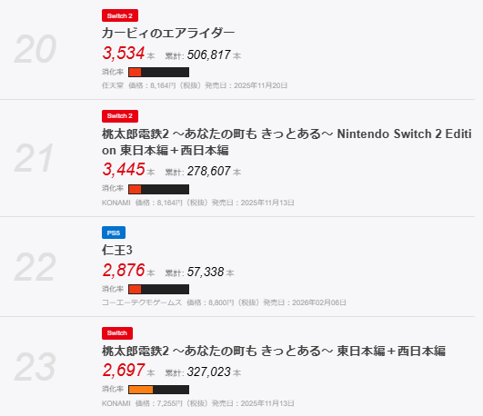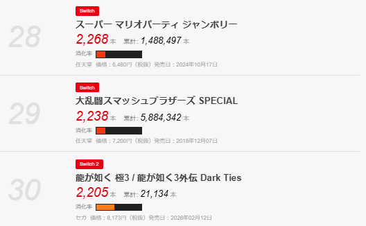ゲームの内容や、今までの積み上げから結果自体は妥当と言えるが、スイッチ2でも4万本近くの売上を記録しているので
