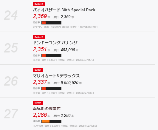 【ファミ通】2026年02月23日~2026年03月01日のソフトランキングTOP30