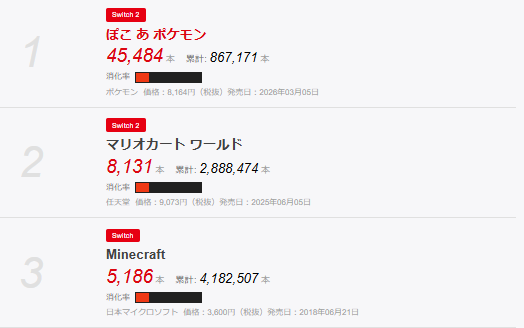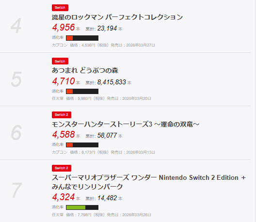 出典︰ゲームソフト販売本数ランキング 集計期間:2026年03月30日~2026年04月05日