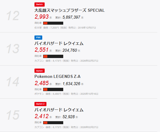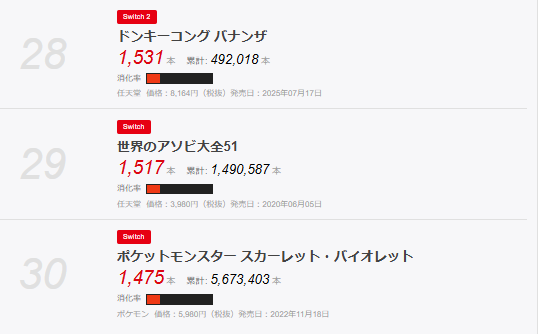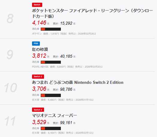 バイオハザードレクイエムと紅の砂漠のみのランクインで、28-2という厳しい状況となっている。