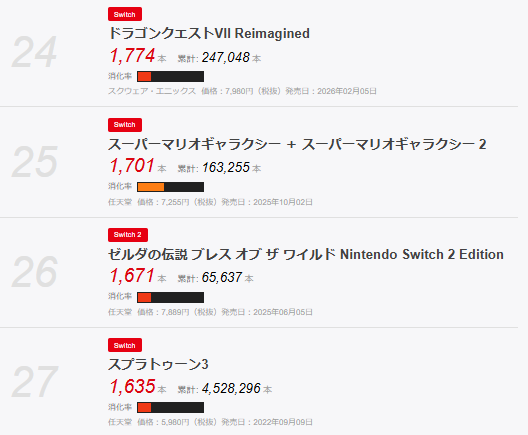 2025年度には、スイッチは惜しくも国内500万台に到達しなかったものの、2026年度初週の先週の結果で