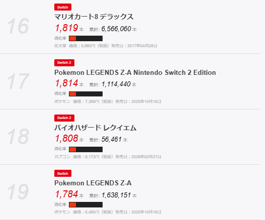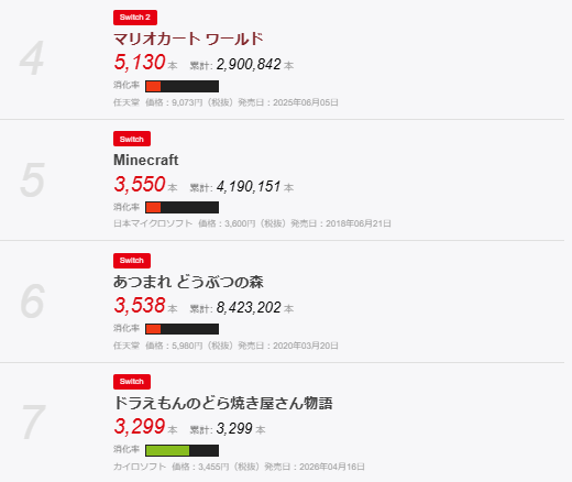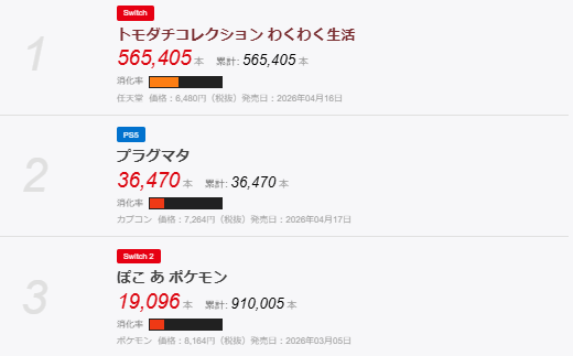 出典:ゲームソフト販売本数ランキング 集計期間:2026年04月13日~2026年04月19日