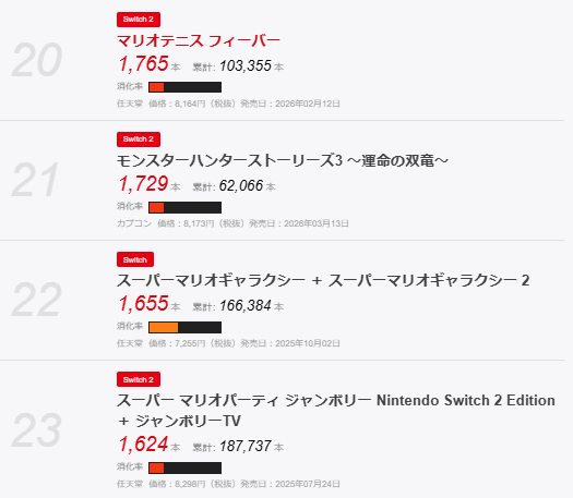 今日から、マリオの映画も日本で公開が始まり、来週以降はマリオ関連のソフトがどこまでランクインしてくるかと