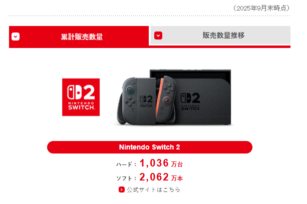 順調過ぎる最高のスタートを切ったニンテンドースイッチ2。これから決算のたびに増える台数に注目ですね!