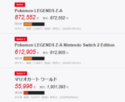 【ソフトランキング】ニンテンドースイッチ2の20週目ソフトランキングTOP30 2025年10月24日 ゲーム週販ランキング 本日ファミ通で更新された、2025年10月13日~2025年10月19日のソフトランキングTOP30の結果と、総評の記事となる。ハード販売台数・TOP10総括は昨日の記事参照。 続きを読む Comment(0)